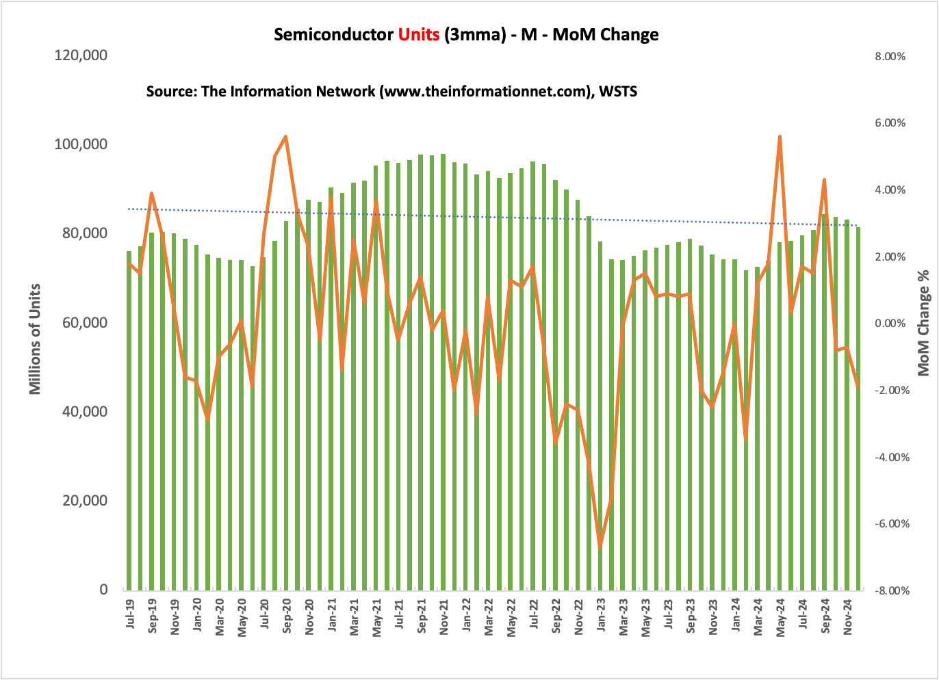Chart 1 illustrates semiconductor Unit Growth from July 2019-December 2024.